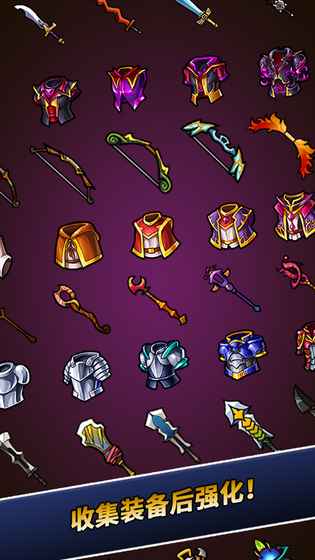 收集各种勇士和装备的乐趣!收集每个勇士各有的套装装备!使用训练,升级,强化,合成,进化累养成更强大的勇士吧!收集有个性的勇士!