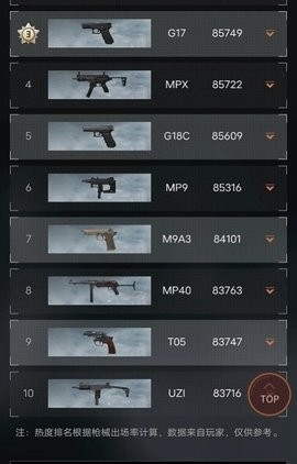 数据全,搜索方便,使用简单,让玩家快速掌握枪械的流行情况