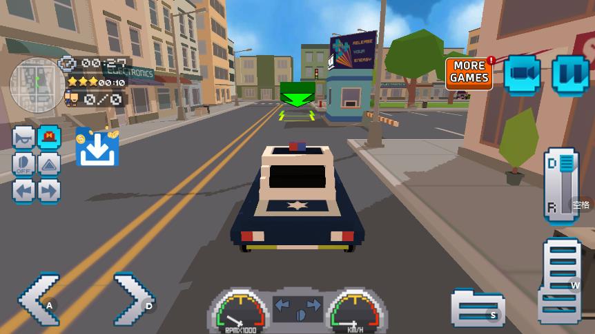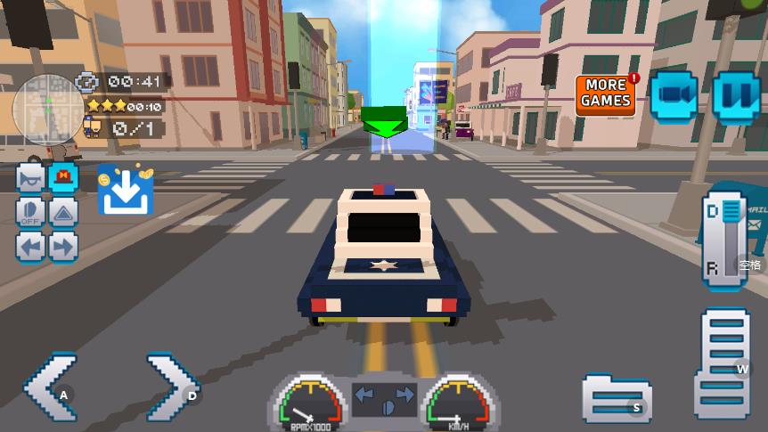 解锁最好的块状警车在这个卡通犯罪城市模拟器。