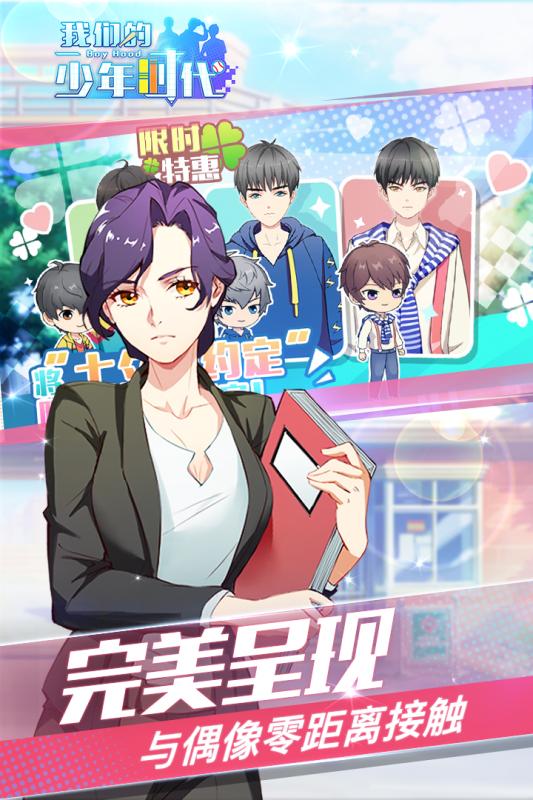 我们的少年时代是一款由乐逗游戏开发,深受年轻玩家喜爱的偶像养成类手游。游戏以同名电视剧为蓝本,让玩家以偶像同学的身份与王俊凯、王源、易烊千玺等角色零距离接触,体验青春校园的热血与梦想。玩家可以在游戏中探索校园神秘事件,解锁偶像剧情。