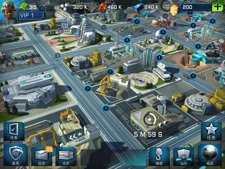 基地建设:玩家需要建造自己的军事基地,通过升级建筑、研发科技、生产资源等方式提升基地实力。