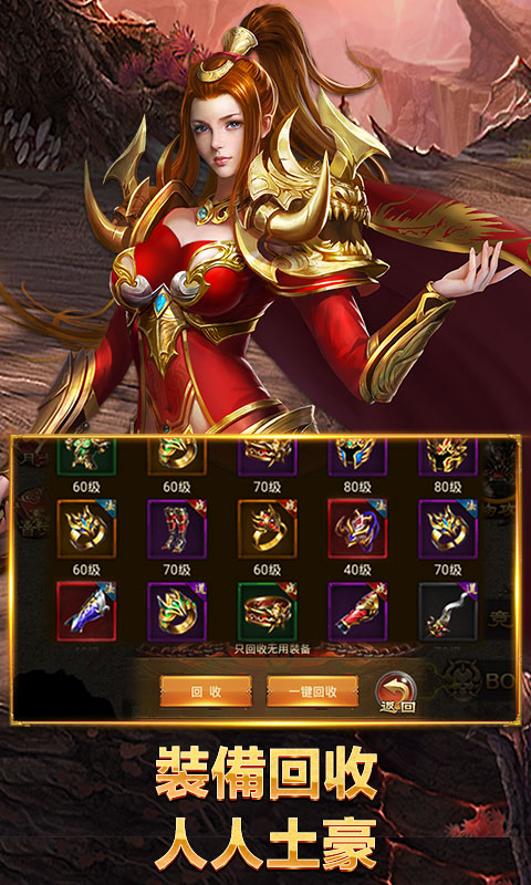游戏在延续传统1.76传奇元素的基础上,加入了全新的合击系统,强力战神助阵,让你轻松挑战各大BOSS