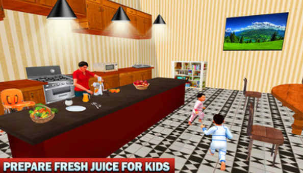 玩家作为妈妈需要带着两个小宝宝出去散步、帮他们换纸尿布...。