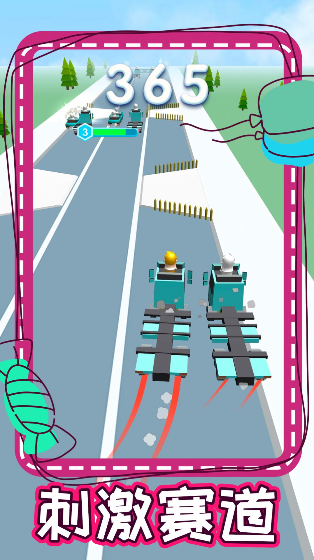 游戏内容,轻松的氛围,适合不同的人群来玩耍,去展现出技巧打败对手;游戏支持多人一起比赛,选择喜欢的车辆去与对手展开刺激的比拼;一路上有很多的障碍物,你要非常的小心,快速的反应过来躲避;