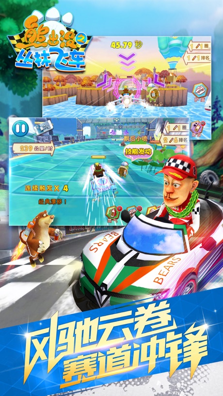 熊出没之丛林飞车是一款刺激且充满乐趣的竞速游戏,以其华丽的3d图形、丰富的赛车和车手选择,以及创新的“海!陆!空!”多场景立体空间竞速为特色。这款游戏完美结合了熊出没的动画元素,带给玩家既熟悉又全新的游戏体验。