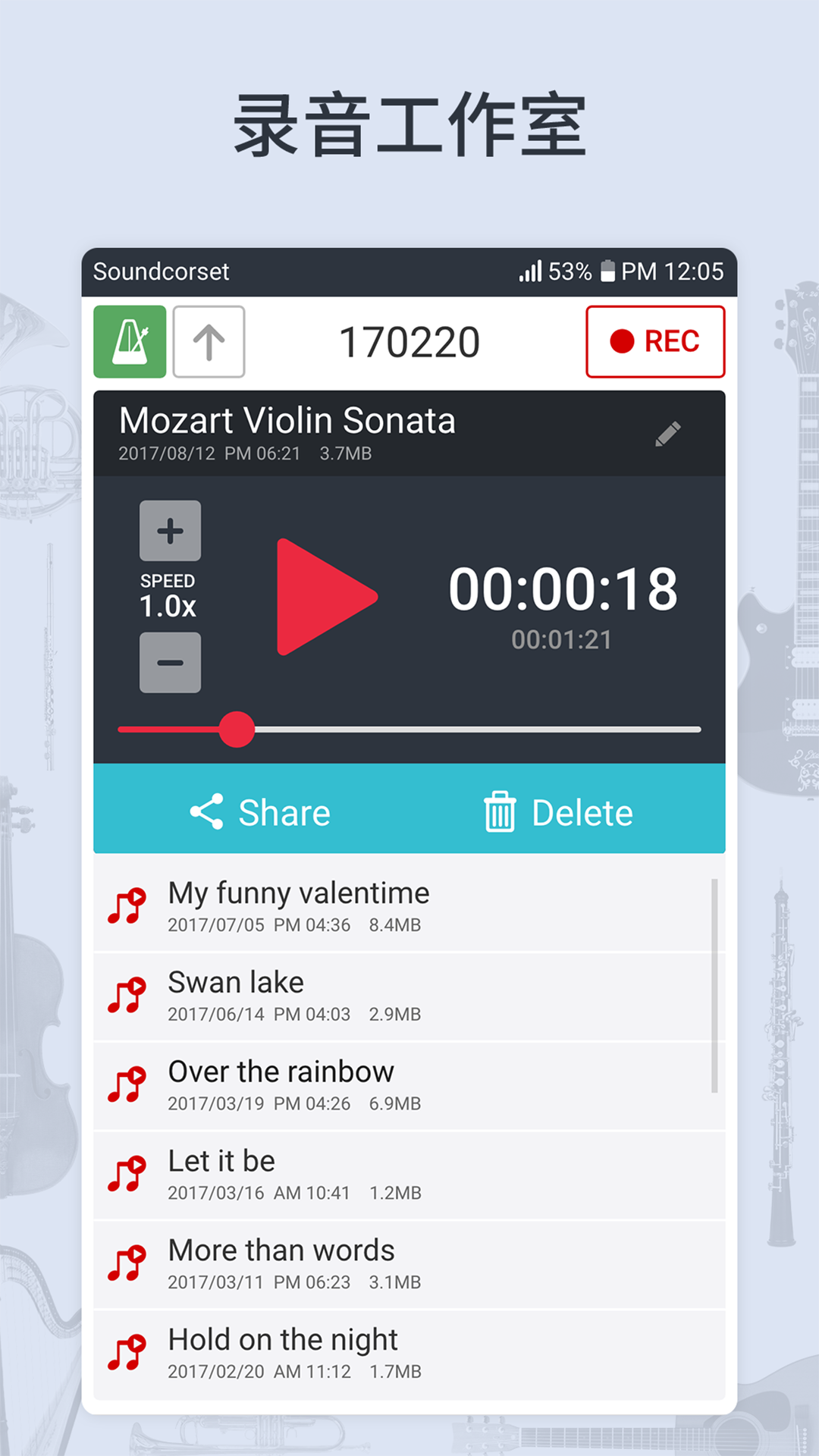 一体式节拍器+调音器+录音机覆盖钢琴,单簧管,声乐练习等。