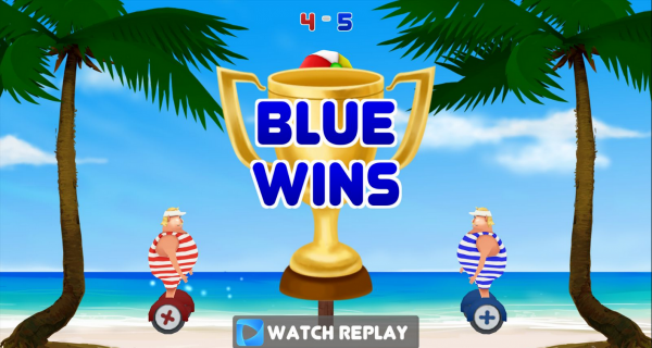 并不是传统的6v6的排球,游戏中只有身着红蓝两色衣服的酷似相扑身材的人拦网对战