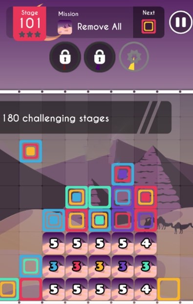 这是一款极具挑战性的减压游戏,玩家可以挑战并完成180多项任务,它需要使用组合,以消除舞台障碍,美丽的背景设置和彩色的方形图形,这是令人眼花缭乱。