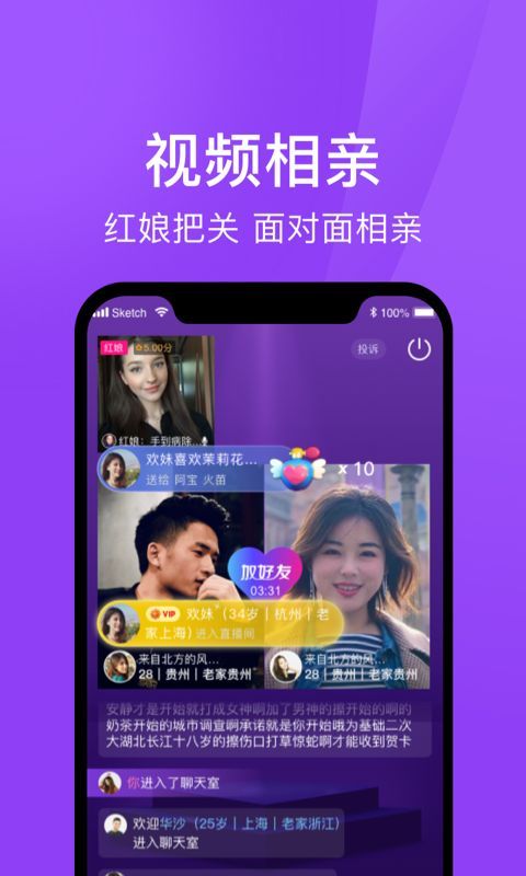视频交友,精准推荐交友用户,让你快速脱单,快速遇到Ta,实名手机注册,真人婚恋交友,一分钟的相见给你带来永久的缘分。