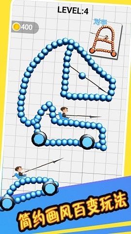 勇敢者的格斗游戏的画面十分简约,玩家可以通过绘画的方式,打造自己的战车,根据玩家绘画的团,可以让战车获得不同的能力哦,击败你的对手即可赢得胜利。感兴趣的小伙伴快来这里下载体验一下吧,尽情发挥你的想象力。