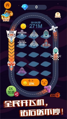 全民开飞机用金币收藏自己喜欢的机型,玩家可以不断闯关挑战赢取金币,获得金币你就可以买飞机,超多奇妙道具带来无限的想象,一定不要错过哦。