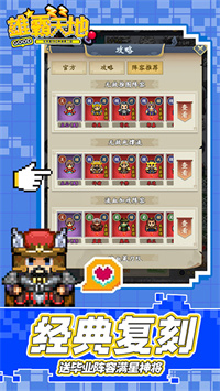 雄霸天地手游是一款像素风格的三国冒险游戏,穿越回到经典的三国时代,收集众多熟悉的名将角色,组建你的阵容作战,挑战副本赢取技能和装备等道具,运用策略取得胜利,喜欢三国游戏的朋友可以来下载!