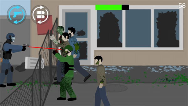 通过射杀僵尸获得奖金,更换更加强大的武器。