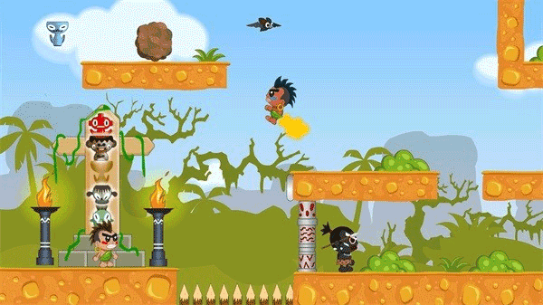 一款经典的双人闯关游戏,游戏讲述的是从前有一个小村庄,这里生活着一群非常爱吃生地瓜的原始人,他们从小到大一直在吃地瓜,所以他们有一种常人所不及的本领,那就是利用放屁将他们推上天空,有一天,他们发现自己村子里保佑着他们的宝物图腾不见了,于是决定让两个放屁飞得远的兄弟,去寻找图腾的下落,就这样两兄弟开始了寻找宝物图腾的漫长旅程。