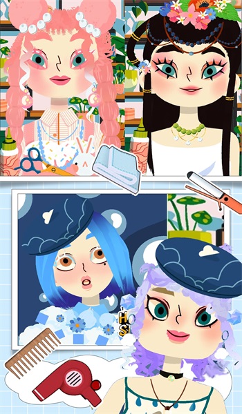 丰富的美发工具:游戏提供了多种美发工具,如梳子、剪刀、电卷发器和头发拉直器等,让玩家能够随心所欲地设计发型。