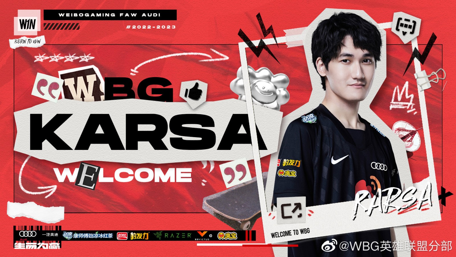 WBG新赛季阵容:Theshy、Karsa、Xiaohu、Light、Crisp