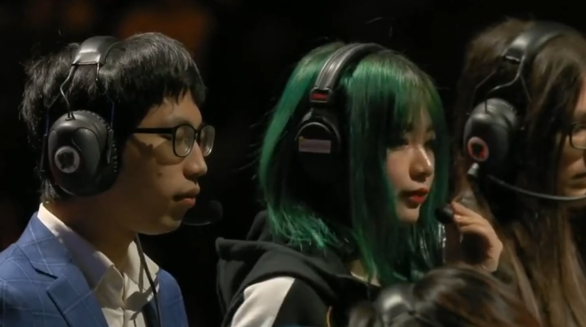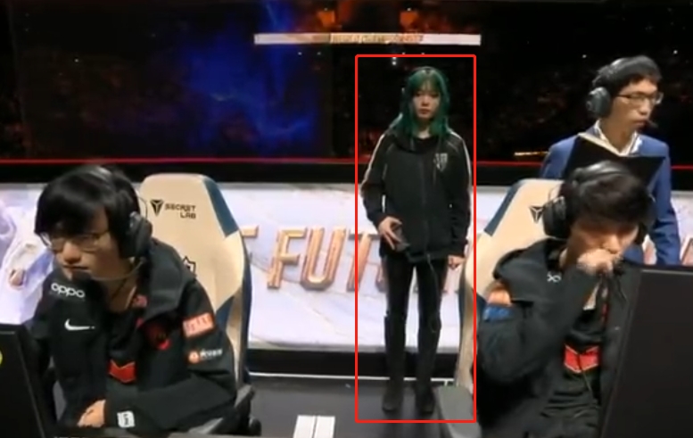 -同年S9总决赛上,一位绿色头发的裁判姐姐也两度出镜