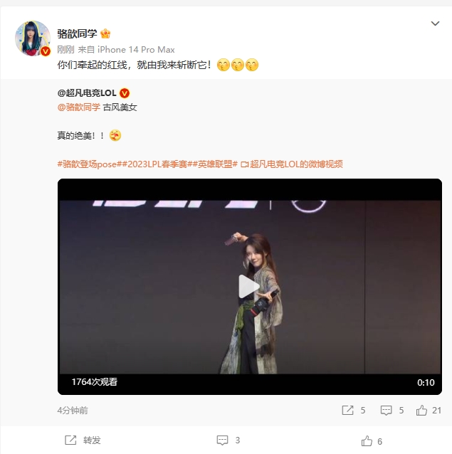 骆歆本人在后台也更新了微博:“你们牵起的红线,就由我来斩断它!”